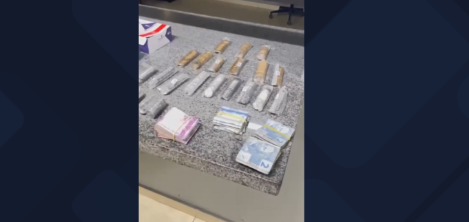 Segundo a PM, a equipe foi acionada após o crime e localizou o veículo usado na fuga poucas quadras do estabelecimento. Dentro do carro, que havia sido furtado, estavam os medicamentos e alianças de ouro levadas da farmácia.